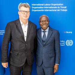 2010 Advocate Siarhei Antusevich, the Vice-President of the Belarusian Congress of Democratic Trade Unions, met ILO Director-General Gilbert F. Houngbo at the 2025 International Labour Conference in Geneva. Siarhei reported the following: “The 2025 session focused on global challenges such as the just transition, decent work in the platform economy, and the strengthening of international labour standards.
