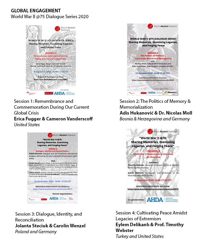 World War 2 Peace arose out of the Peace Cluster within the Bosch Alumni Network, a cooperation between the Robert Bosch Stiftung and the iac Berlin. It is also generously co-sponsored by the Alliance for Historical Dialogue and Accountability at Columbia University.