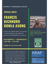 Disability Awareness Caucus with Special Guest: Francis Bichnornd Komla Asong, Executive Director of Voice of People with Disability Ghana (VOICE Ghana). Francis will speak about his journey to advocating for the rights of persons with disabilities in Ghana.