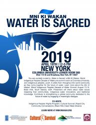 You are cordially invited to, Water is Sacred, a Mni Ki Wakan: World Indigenous Peoples Decade of Water pre-summit event at Columbia University. Join indigenous peoples, youth, & allies from throughout the world community as they come together for the future of water.