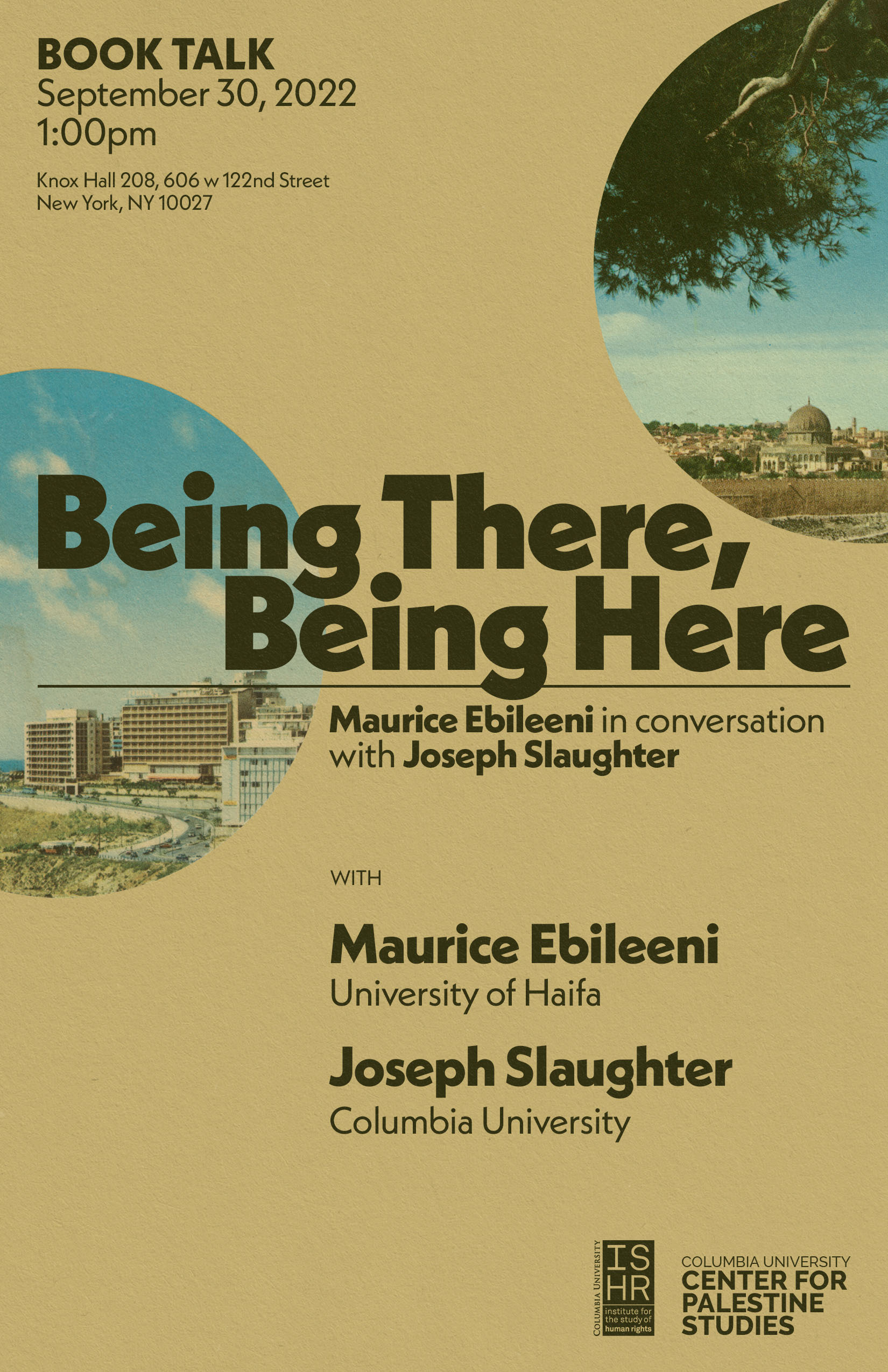 Join the Center for Palestine Studies and the Institute for the Study of Human Rights for a conversation with Maurice Ebileeni and Joseph Slaughter in celebration of Ebileeni’s new work Being There, Being Here.