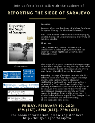 For Zoom information, please register here: http://bit.ly/SiegeofSarajevo