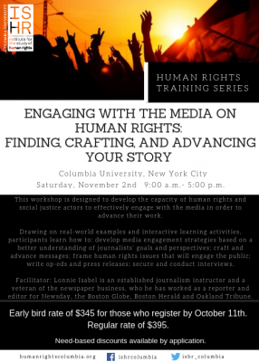 Columbia students are eligible for a 40% discount if enrolled by the early bird deadline (please email humanrightsed@columbia.edu for more information).