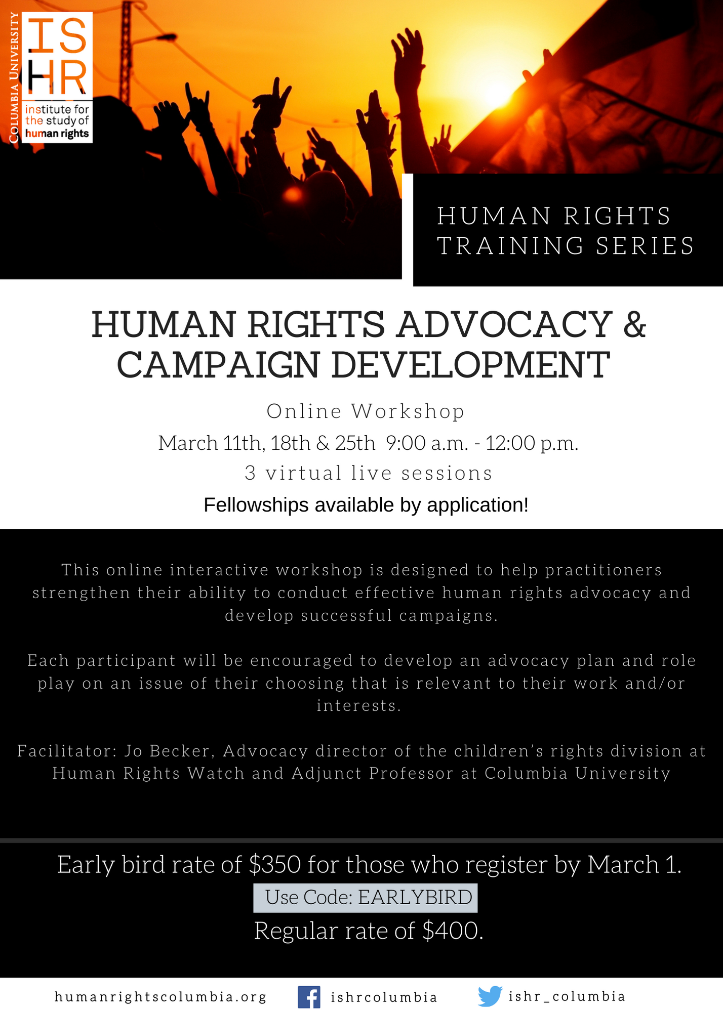 humanrightsed@columbia.edu for more information). We will also offer a limited number of reduced rates for those with significant financial need.