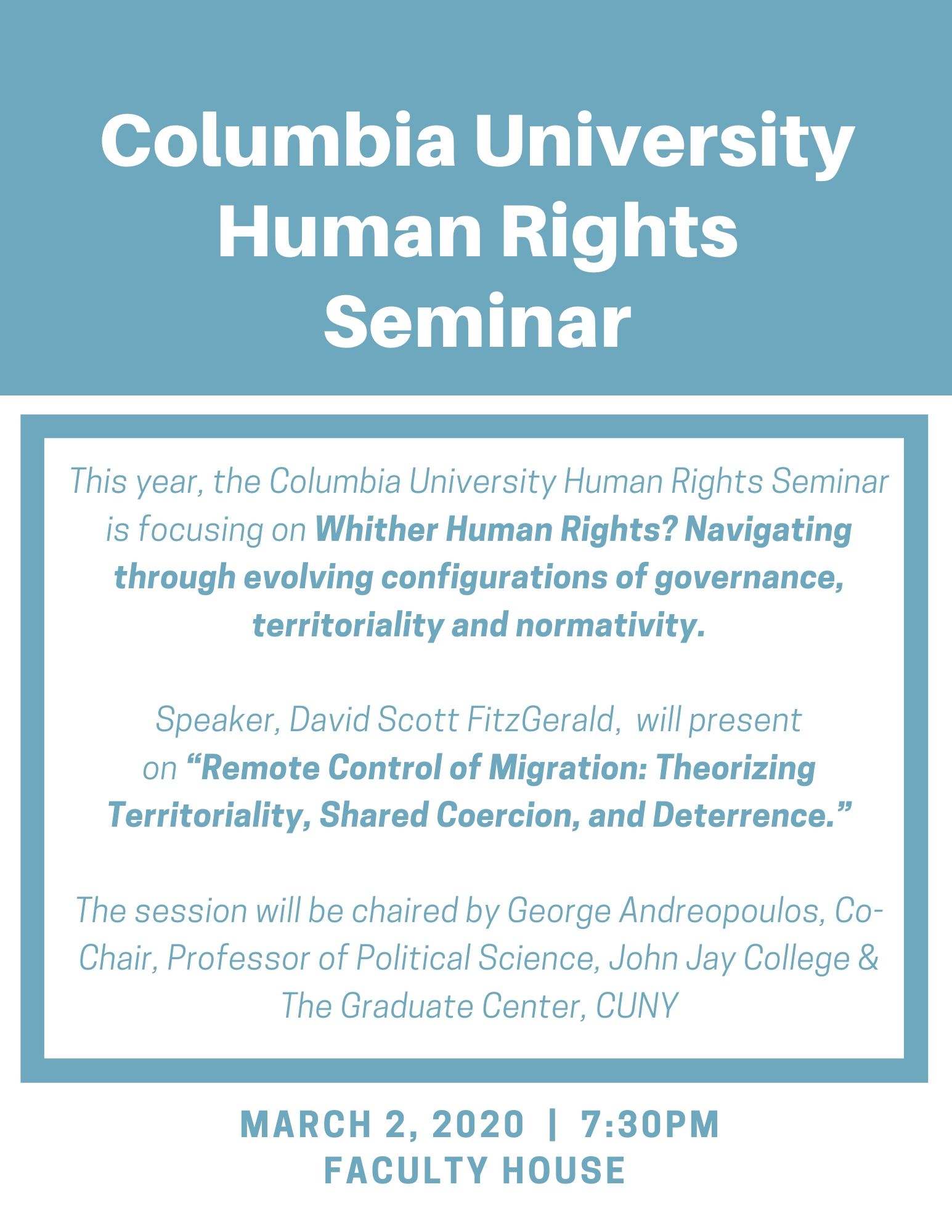 The Columbia University Human Rights Seminar Cordially invites you to attend the Seminar’s fourth meeting on Monday March 2nd, 2020.