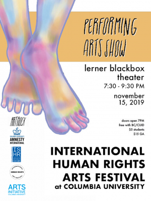 The Performing Arts Show will be held on November 15th from 7:30 to 9:30pm at the Lerner BlackBox Theater and will feature student performances - including dance, theater, poetry, music, stand-up comedy - which will be introduced by speeches of distinguished guests: Christelle Ownu, the African Diaspora Lead Advisor at the NYC Commission on Human Rights, Marissa Gutierrez-Vicario, the Founder and Executive Director of Art and Resistance Through Education (ARTE) and Tom Block, the Founding Producer of the IHRAF.