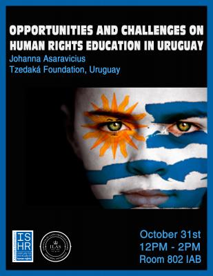 Tuesday, October 31, 2017 12:00 PM - 2:00 PMInternational Affairs Building, 420 W. 118 St., New York, NY 10027 Room 802A conversation with 2017 Human Rights Advocate Johanna Asaravicius of the Tzedaka Foundation, Uruguay Johanna has worked on human rights education initiatives at various foundations and NGOs. She previously served as the Director of International and Social Justice at Hillel Uruguay. In Israel, she worked in the media and culture department of the Peres Center for Peace. After living in Argentina, Israel and Spain, Johanna recently returned to Montevideo. She is currently working on resource mobilization at the Tzedaká Foundation. She earned the BA in Social and Political Science at the Universidad Católica del Uruguay Click below to see the event on the Columbia events calendar.Event link