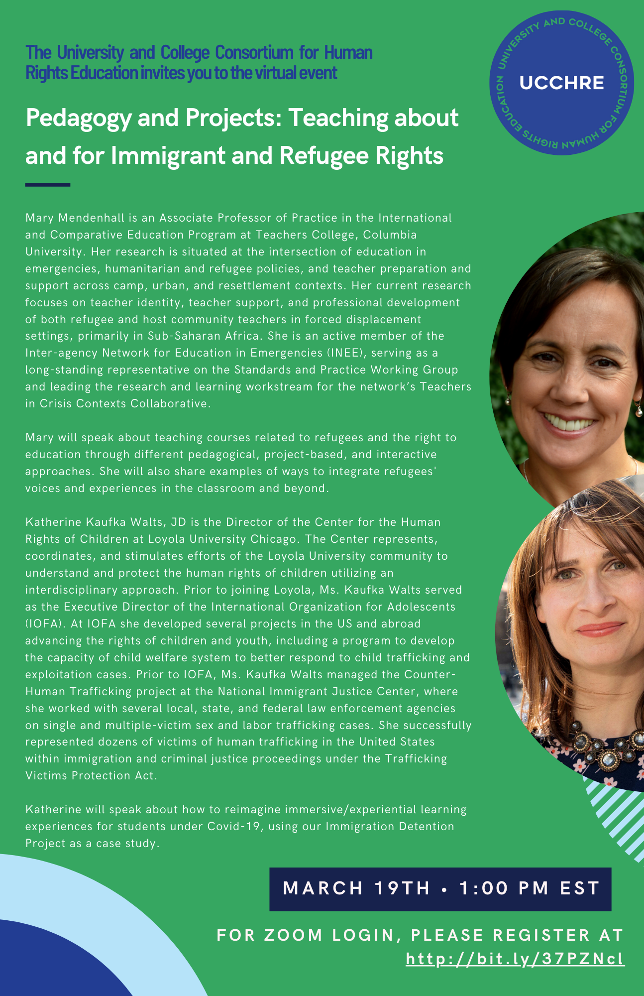 Mary will speak about teaching courses related to refugees and the right to education through different pedagogical, project-based, and interactive approaches. She will also share examples of ways to integrate refugees’ voices and experiences in the classroom and beyond.
