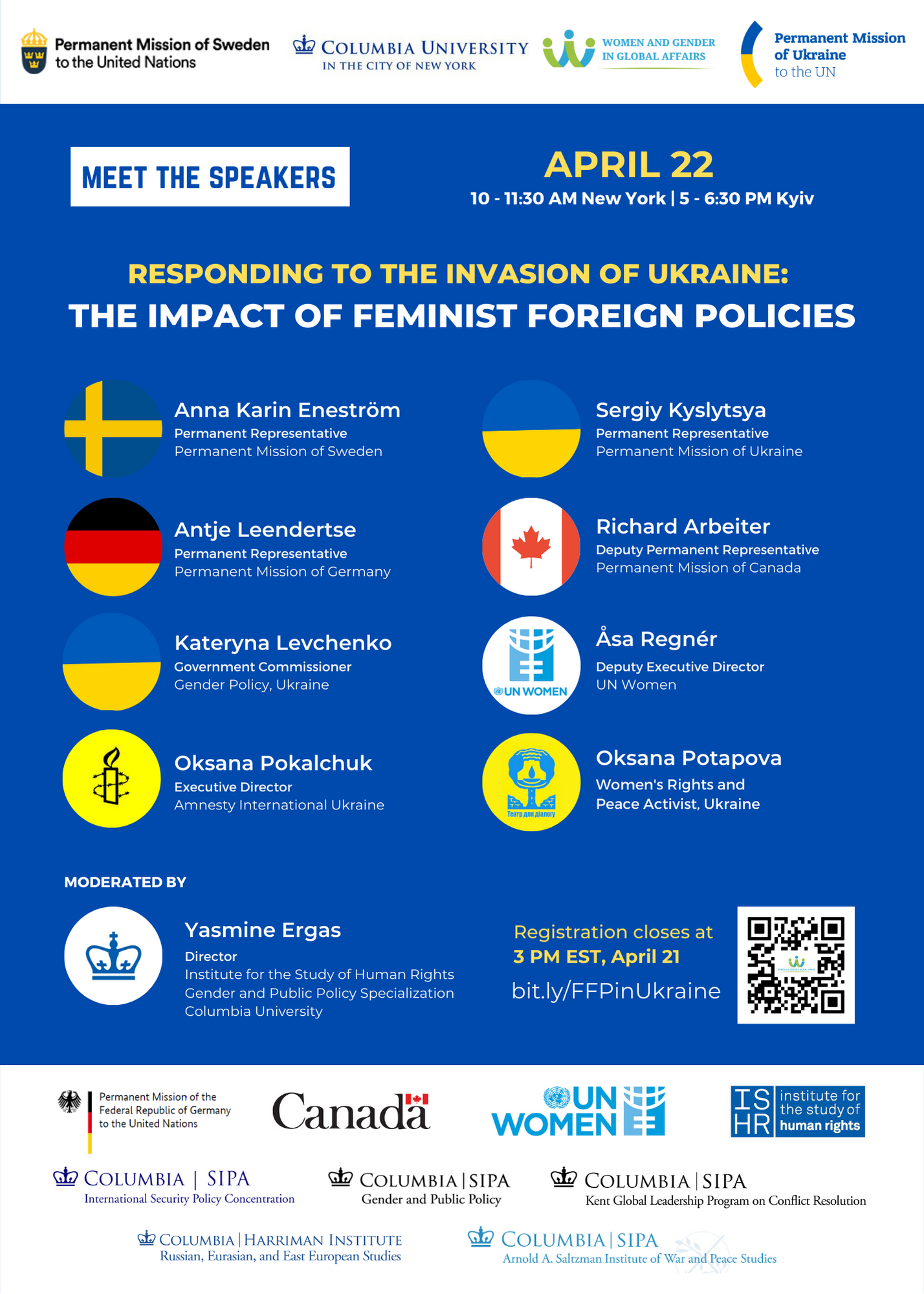 * Hosted by Permanent Missions of Sweden and Ukraine to the UN and Columbia University’s Women and Gender in Global Affairs Network at the Institute for the Study of Human Rights.