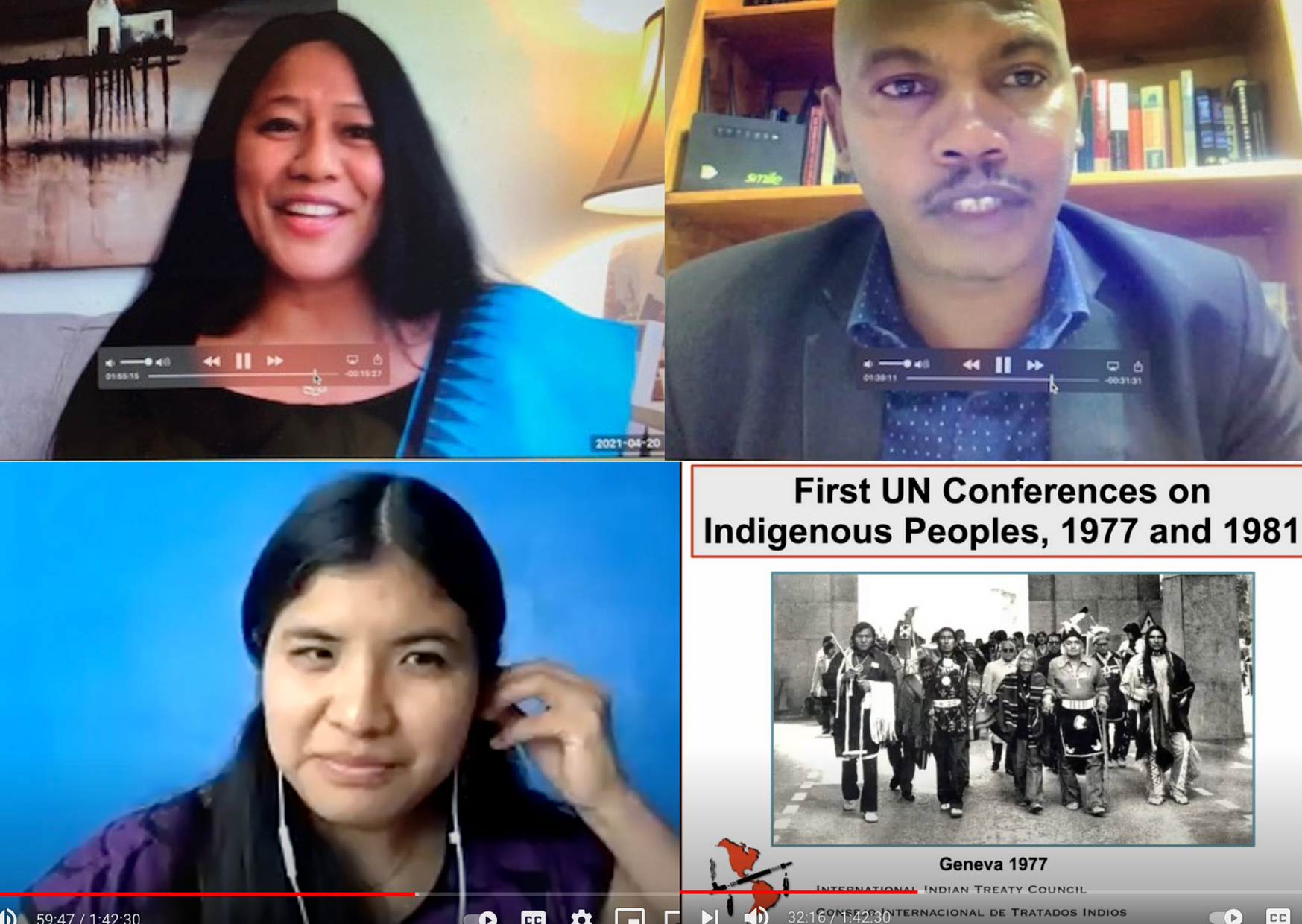 On April 20, 2021, a side event for the 20th Session of the UNPFII was organized by Columbia University’s Institute for the Study of Human Rights. It was held virtually via Zoom, and was moderated by the instructor of the MOOC, Professor Elsa Stamatopoulou of Columbia University, and included presentations by: Andrea Carmen of the International Indian Treaty Council; Stephanie Grepo of Columbia University; Sheryl Lightfoot of the University of British Columbia; Aehshatu Manu, Secretary General of the African Indigenous Women Organization Central African Network; Maurice Matiz of Columbia University; Cecilia Ramirez of the International Indigenous Women’s Forum; Elifuraha Laltaika of Tumaini University Makumira Arusha; and Binalakshmi Nepram of the Manipur Women Gun Survivors Network & Global Alliance of Indigenous Peoples, Gender Justice and Peace.