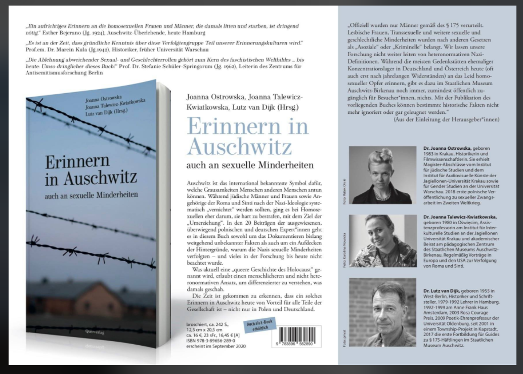 AHDA alumna Joanna Talewicz-Kwiatkowska (2018) together with Dr. Joanna Ostrowska and Dr. Lutz van Dijk released a new volume "Erinnern in Auschwitz much an sexuelle Minderheiten" in Germany, Austria and Switzerland. A first preview of the book in German will take place online on Wednesday, 23 September 2020 via #allabendlichqueer