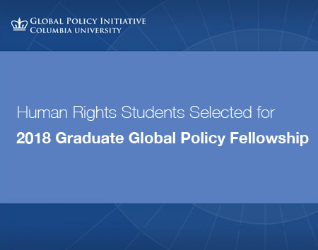 The Institute for the Study of Human Rights would like to congratulate two students in the Human Rights Studies MA program for being selected for the 2018 Graduate Global Policy Fellowship.