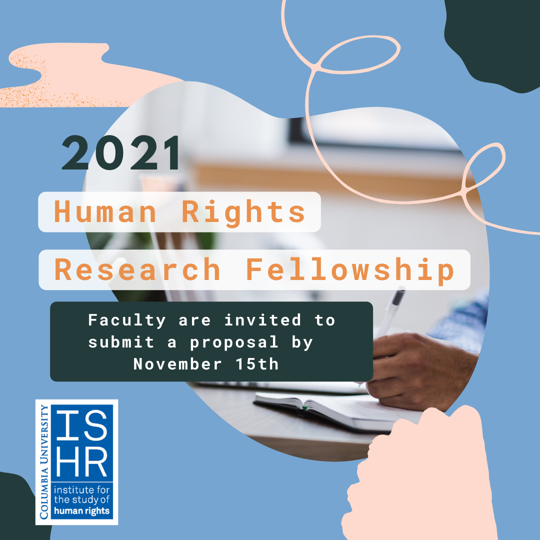 ISHR's Human Rights Research Fellowship supports Columbia University faculty, conducting research related to human rights, and will provide students with an opportunity to gain valuable research experience. ISHR will award up to three student research stipends in the amount of $1,500 in the 2021-2022 academic year.